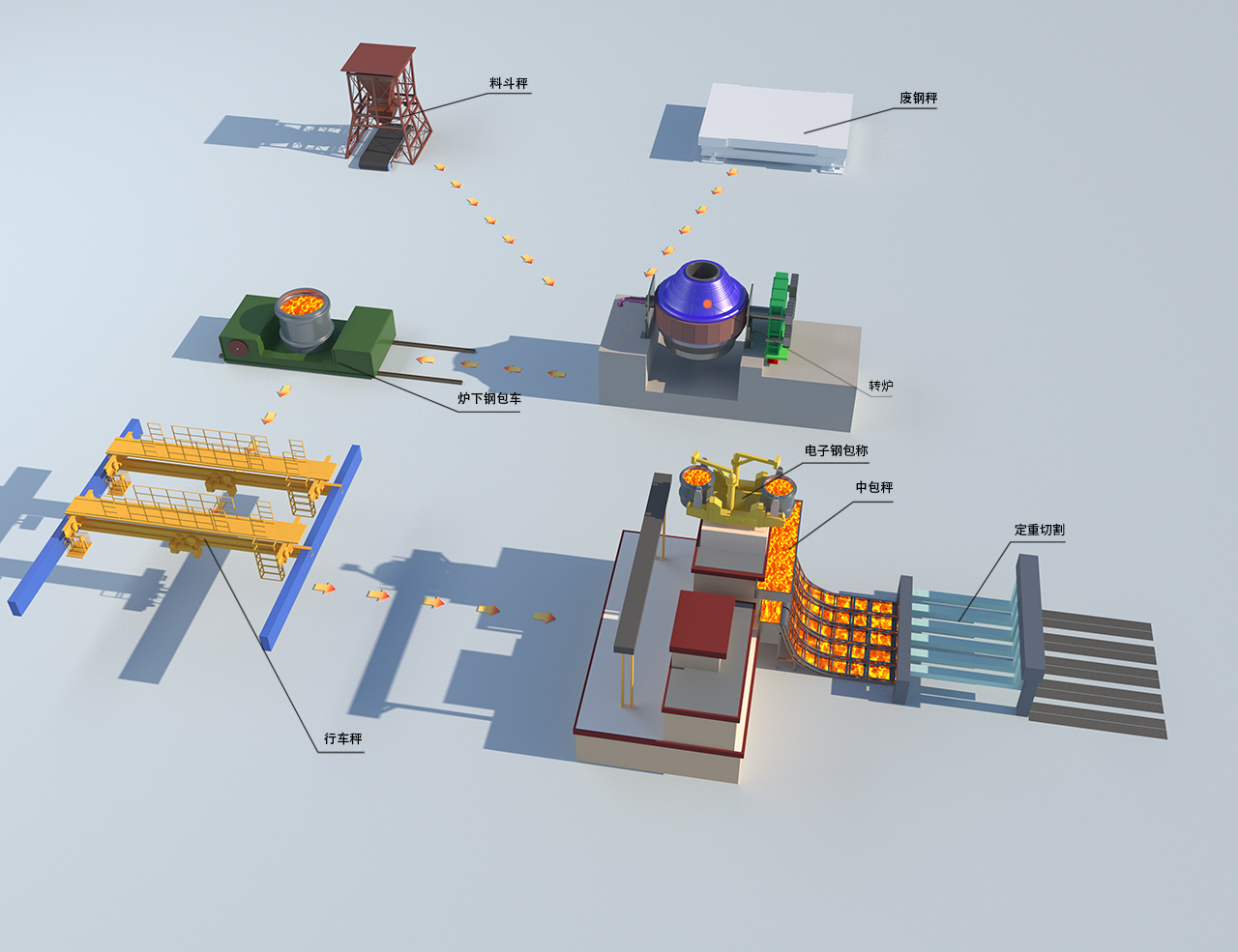 廢鋼秤是對轉(zhuǎn)爐加入廢鋼進行稱重的計量器具,形式也分為很多種,一般有地上平臺式,臺車上平臺式等多種。